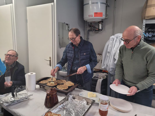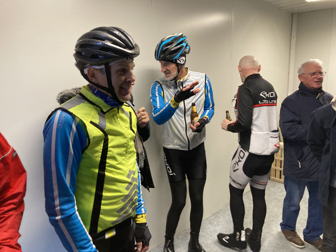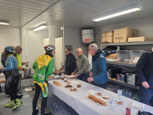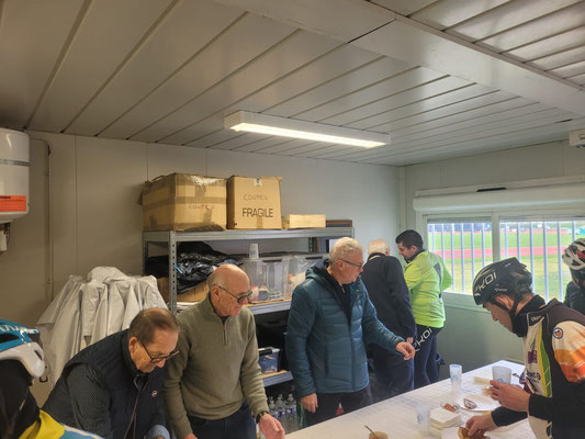 Dimanche 17 décembre 2023 : C'est après une sortie dominicale par température bien fraiche que les cyclos se sont retrouvé pour célébrer l'anniversaire des natifs de novembre et décembre autour d'un vin chaud et galette préparé par Dédé